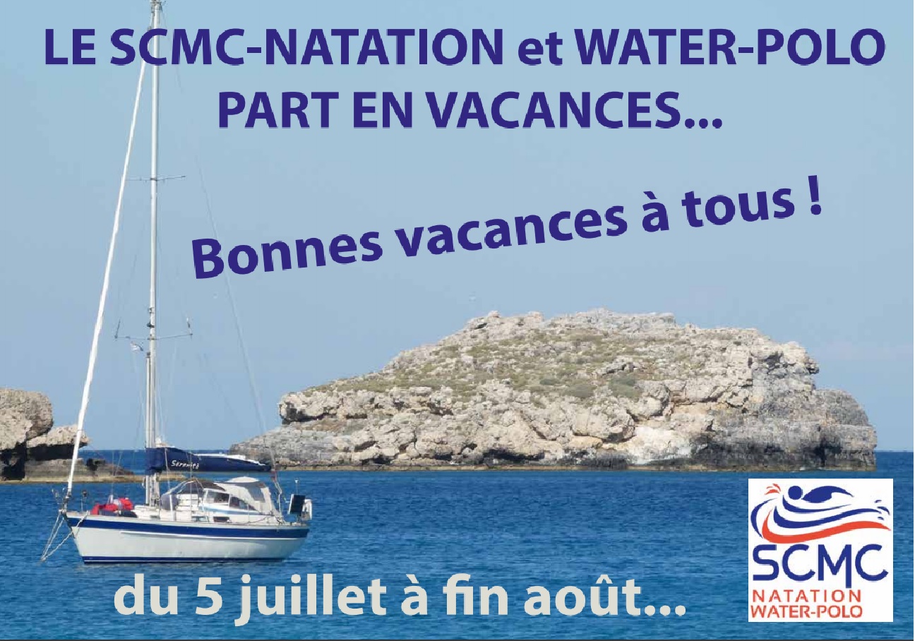 A compter du 05 juillet, le SCMC-NATATION et WATER-POLO part en vacances . Merci à tous les parents et aux membres du Bureau du club, qui sont tous des bénévoles, et qui se sont mobilisés pour cette première partie des inscriptions. Retour des inscriptions le au Forum des associations le samedi 7 septembre à l’espace Maison-Blanche de 10 h à 18 h.