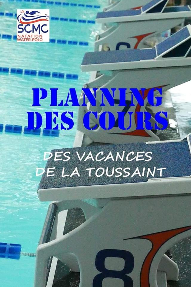 AccueilArticle :Planning des cours durant les vacances de la Toussaint Planning des cours durant les vacances de la Toussaint Publié le 16/10/2019 • Article : Water Polo Mardi 22/10 20h à 22h Mercredi 23/10 de 20h à 22h Jeudi 24/10 de 19h à 21h Vendredi 25/10 de 20h à 22h Natation loisirs adultes BO Mardi 22/10 de 20h à 21h Jeudi 24/10 de 20 à 21h Bonne vacances à tous,