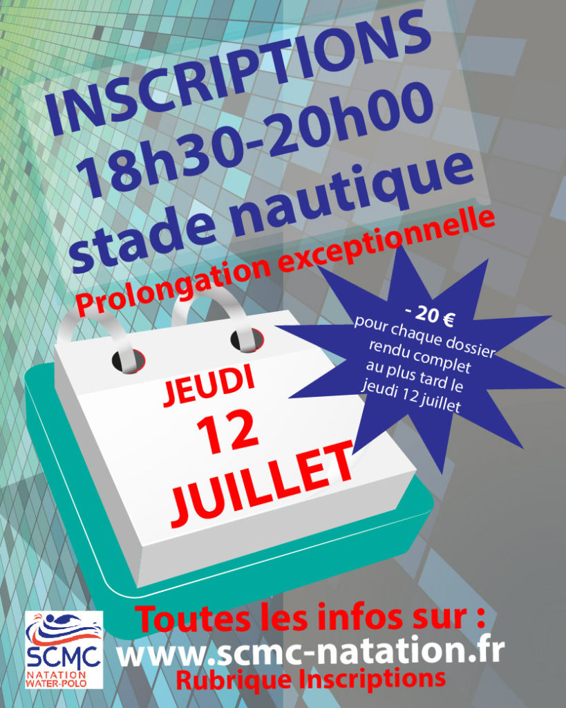 PROLONGATION DES INSCRIPTIONS JEUDI 12 JUILLET 2018 AU STADE NAUTIQUE DE 18H30 A 20H00