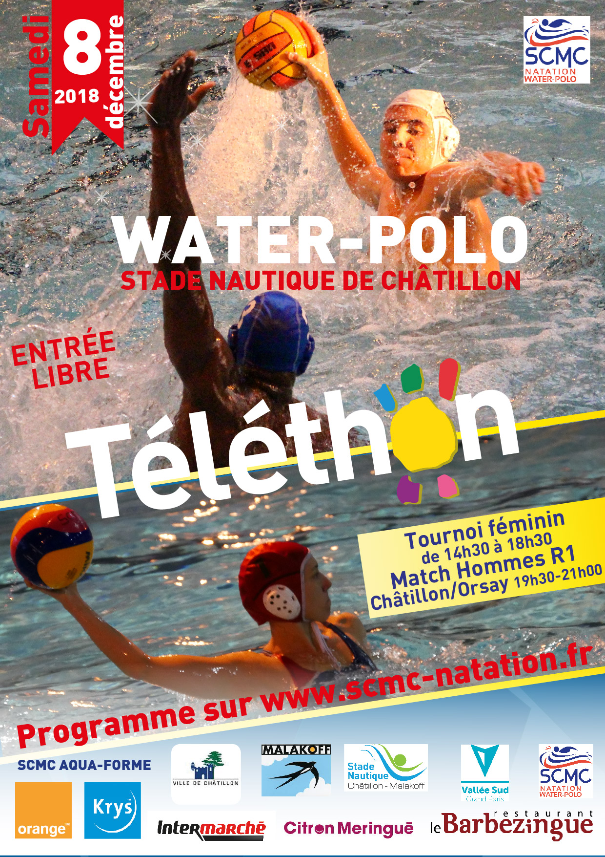 Programme Water-polo du 8 décembre pour le Téléthon au stade nautique :